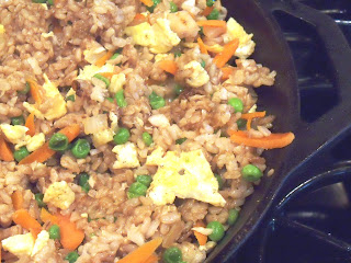 3. With the pan on medium high heat, add remaining canola oil and sesame oil. Once the pan is hot, add rice and stir to coat with oil. Add vegetables, eggs, and meat if using. Shake in Soy Sauce and toss to coat well. Drizzle with Hoisin Sauce and toss again.