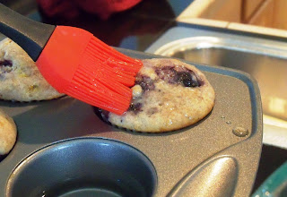 7. Once the muffins have cooled for 5 minutes, brush the muffin tops with glaze. Eat.