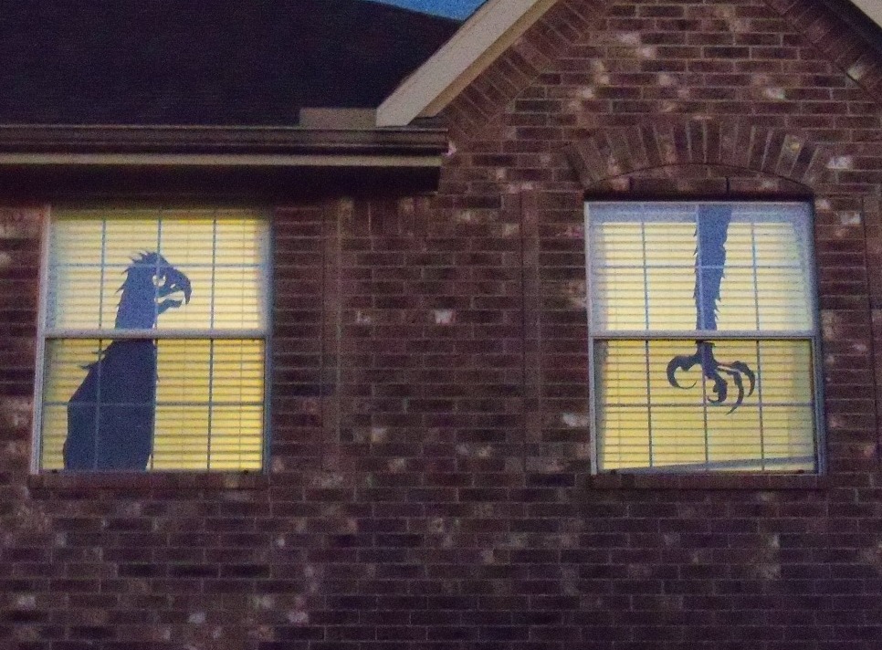 You really can’t see them during the day, because they’re really meant to show their glory when it’s dark and creepy outside. You just turn on the light in the room where they’re hung, and SHAZAM!, your spooking up your neighborhood.