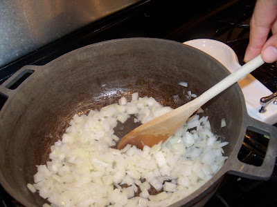 1. In large heavy pot, heat oil. Add onions and cook over medium-high heat until translucent, about 5 minutes.