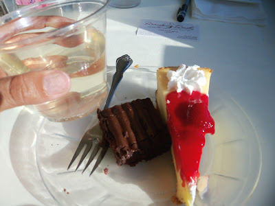For dessert, we dined on Chocolate Cake and Cheesecake with a strawberry sauce. Sweet Poseidon. And then, oh. my. goodness. Deb introduced us to Umber Fiore Moscato (2010) and I wept. Aromas of peach, with a light floral essence. Sweet, with a spark of acid. Crisp, with a bit of a zing! Refreshing, aromatic, and definitely something I’ll be buying to keep in my home.