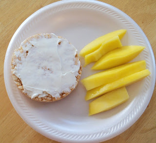 Rice Cake with Low Fat Cream Cheese and Fresh Mango (serve fruit on the side or on top)