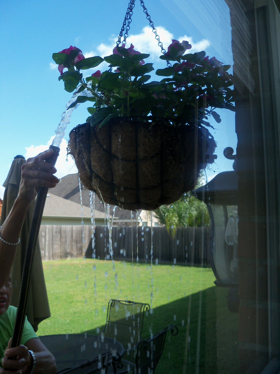 And my hanging baskets that my mother religiously watered everyday, are shriveled up due to the heat, and not enough water.