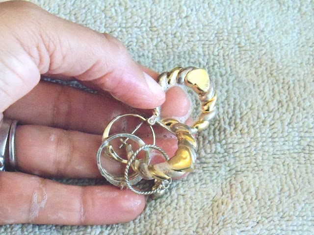 Step Four: Remove jewelry from the container carefully using a fork or spoon. Careful, the water is hot! Place on a clean cloth.