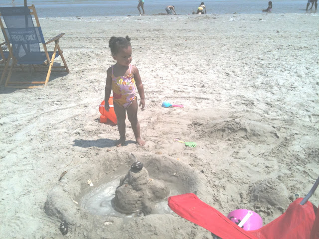 Soledad found two little girls to play with at the beach. One was 5 and the other 2. Her new friends got on every nerve I have. They ate all our snacks and tried to destroy our sand castle 49 times. The were annoying as all get out, and couldn’t stop talking to save their lives.