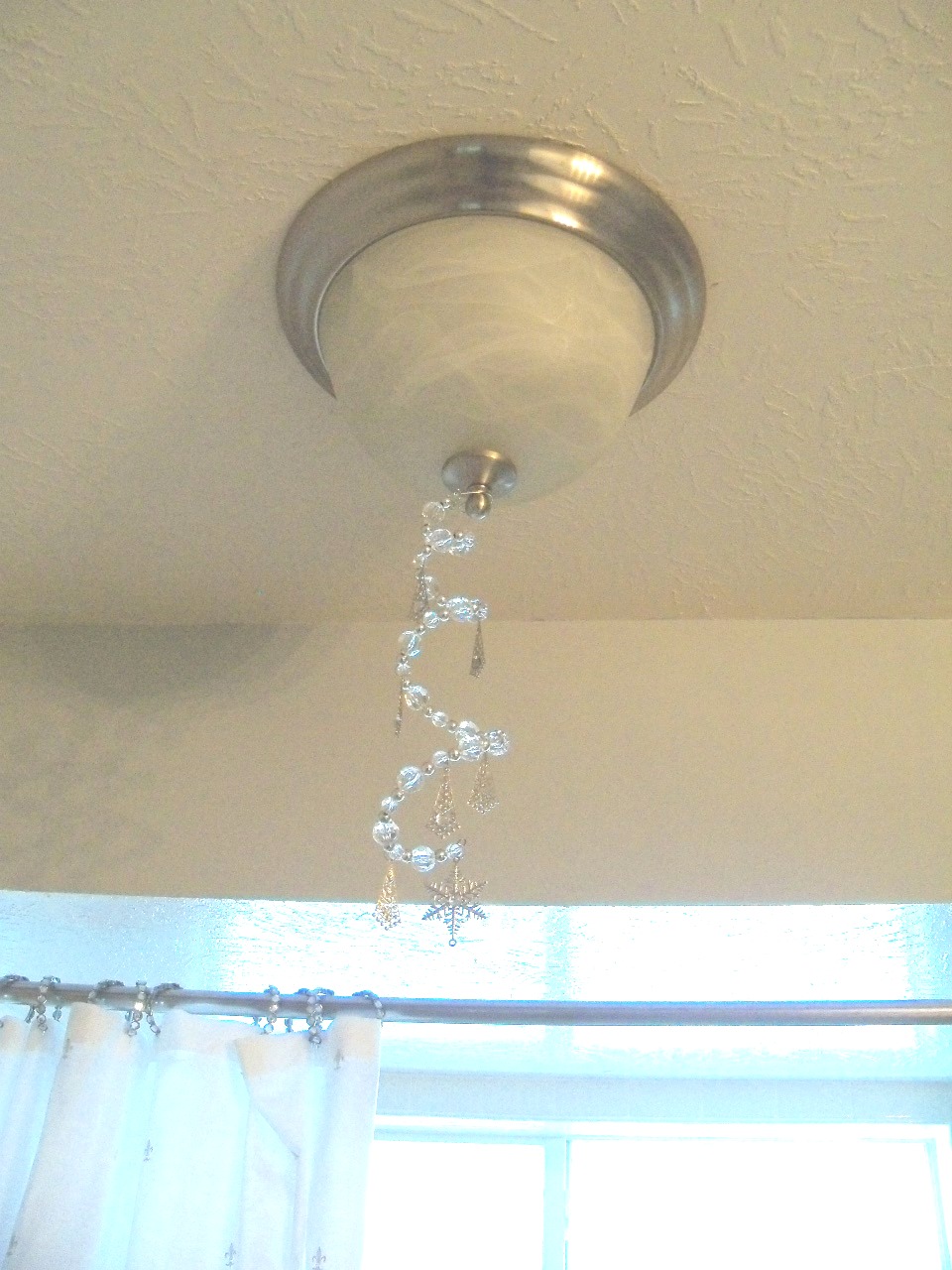 And then we went to our local craft store, and looked for Ornaments. One to be hung on the light fixture (I really wanted a chandelier but we’ll save that for another day) and another to be hung on the closet door to add a little pur-tay.