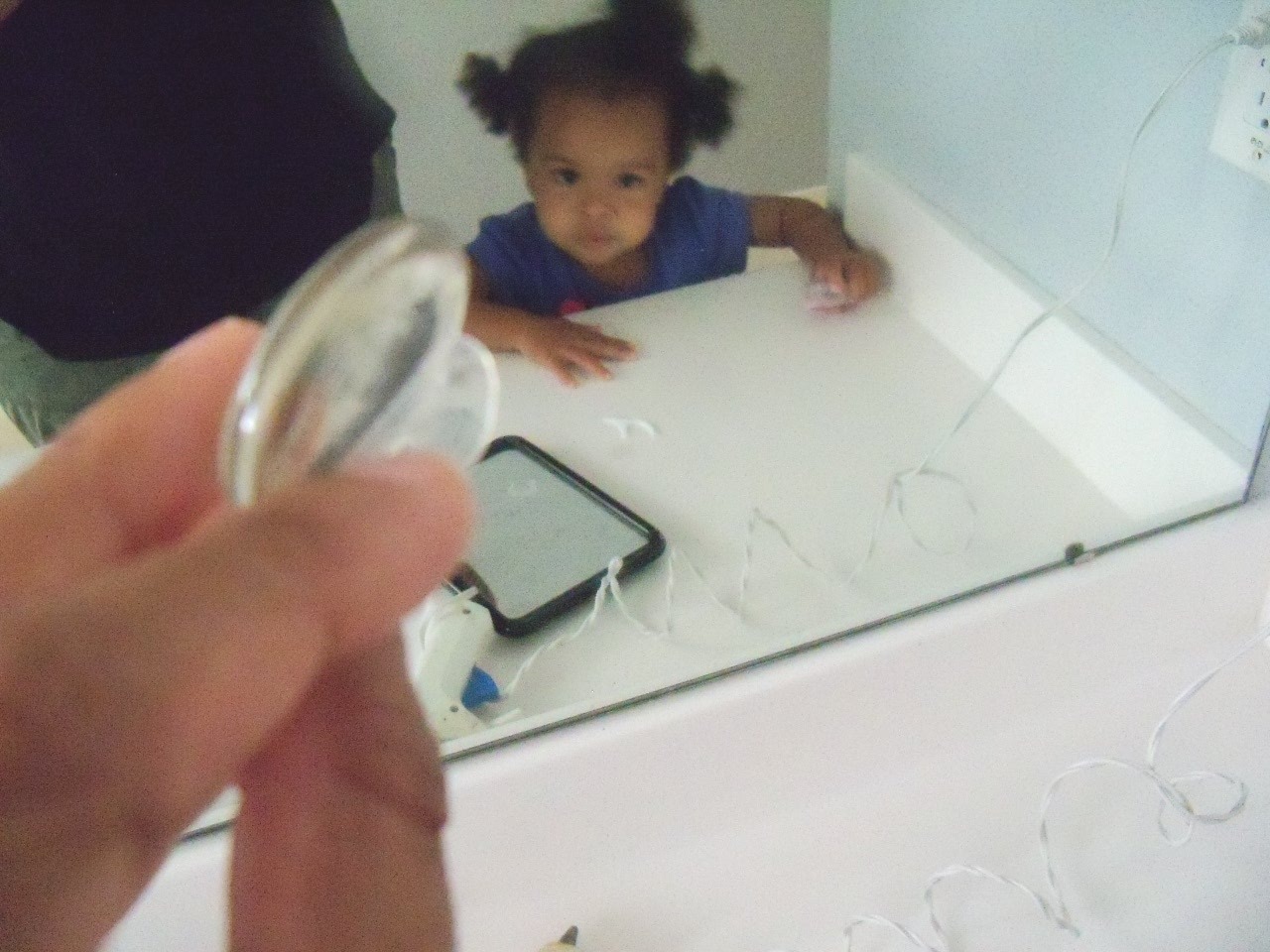 When the girls saw the color, they were NOT excited. I think they were hoping for Pepto Bismal Pink. Yeah. Not gonna happen. I tried to garner their support by enlisting them to help me find Glass Stones to glue to the mirror.