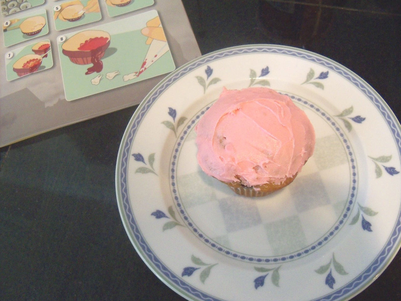1 container of Ready to Use Strawberry Frosting ( THE BOOK called for 1 drop of peach paste mixed with 1 quantity of Italian Meringue Butter cream,)