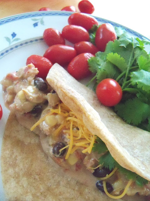 “Chicken Breast, Corn, Black Beans, Cream Cheese, Tomatoes, Crock Pot. . . . DONE!” She boasted.