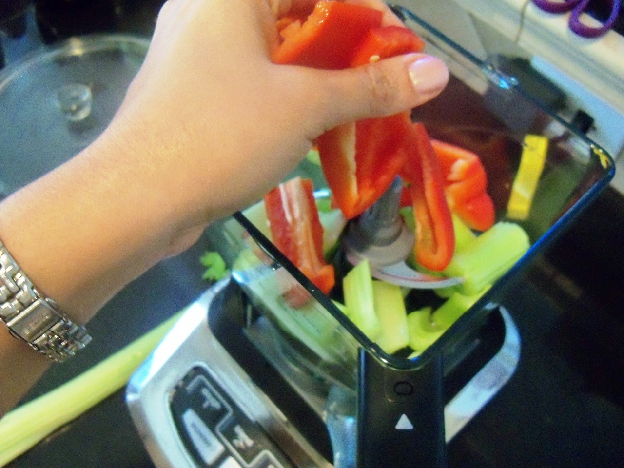 2. Heat the oil in a large pot. Add the finely diced onion, celery, and bell pepper. I just popped mine in the food processor.