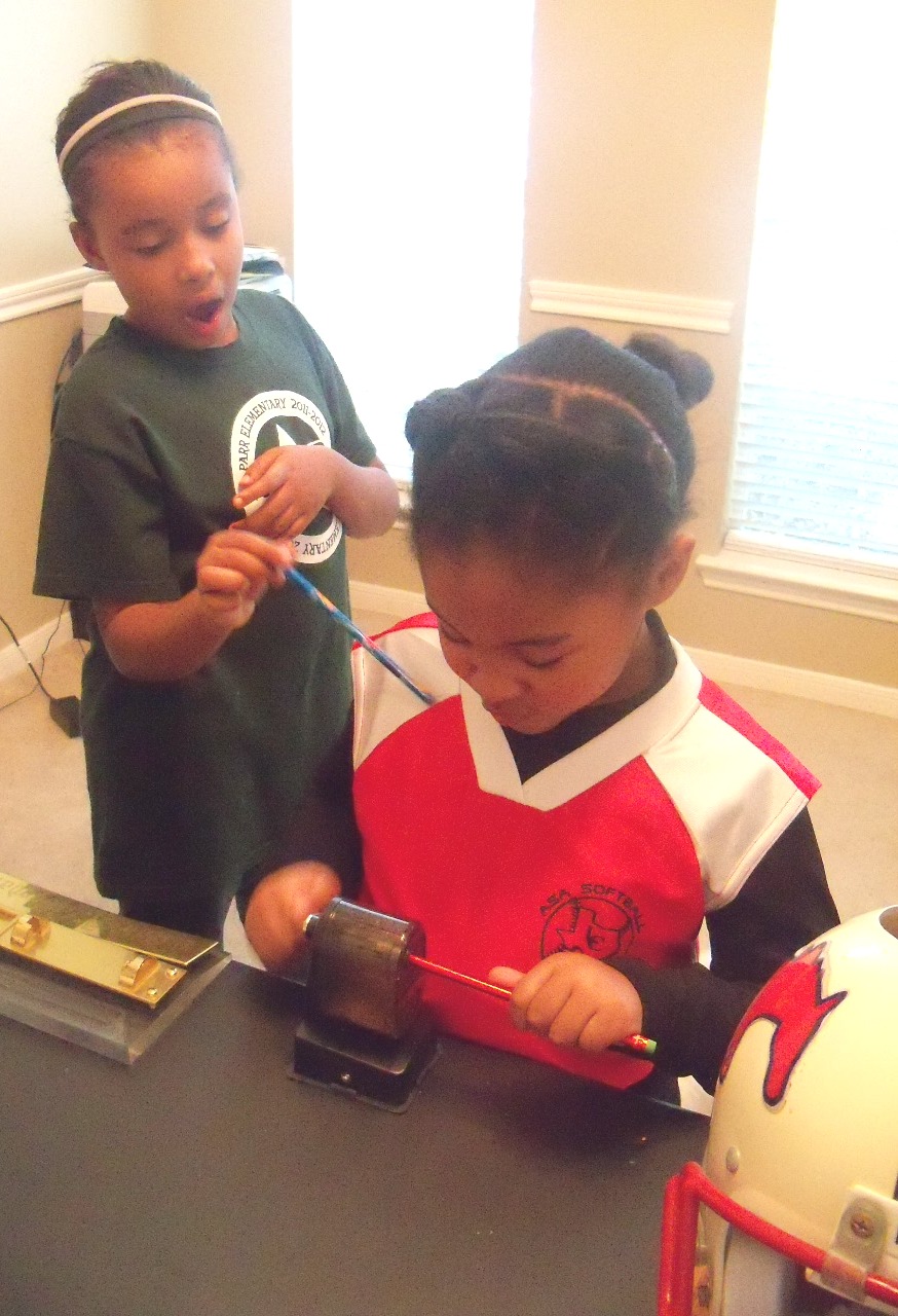 I’m really excited about our brand new pencil sharpener. Can you tell?