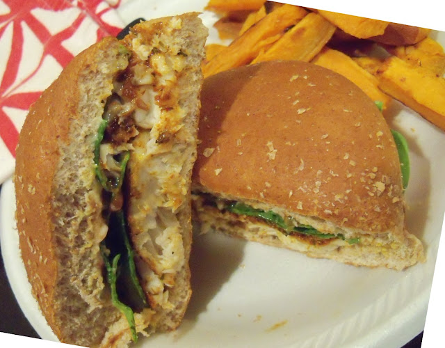adapted from Paula Dean ( A few things that I changed. Paula used butter for the oil and used 1/2 cup of it. I did not. I only used 4 TB and. . . I used smart balance. I have also substituted canola or olive oil in the place of butter. I’m crazy like that. And of course, I’m sure the Kaiser buns she suggested would be fab, but for everyday meals, we use 100% whole wheat buns, and save the white bread for special occasions. Oh! She fried hers yal. But I baked mine. )