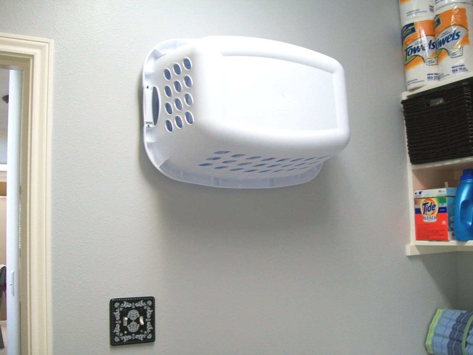 I also added a floor laundry basket that matches the shelf baskets (all purchased from my neighborhood Wal-Mart). So maybe. . . . .just maybe. . . . . my kids might put their soiled socks and softball uniforms into the basket for washing, rather than onto the floor for smelling up my nostrils:(
