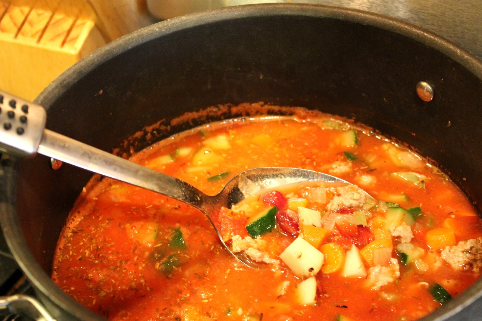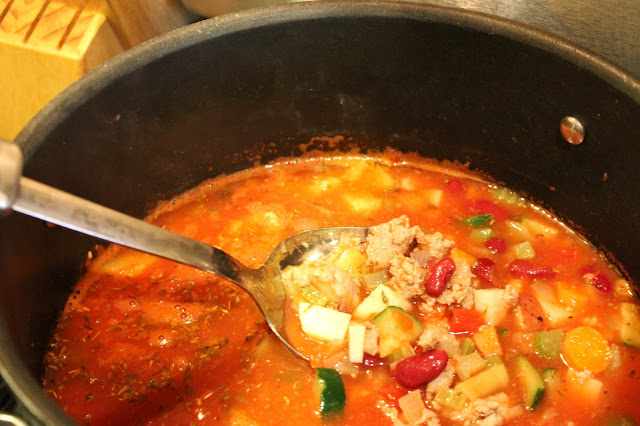 Potato Fagioli ( Thick Vegetable Soup with Potatoes, Tomatoes, and Ground Turkey )