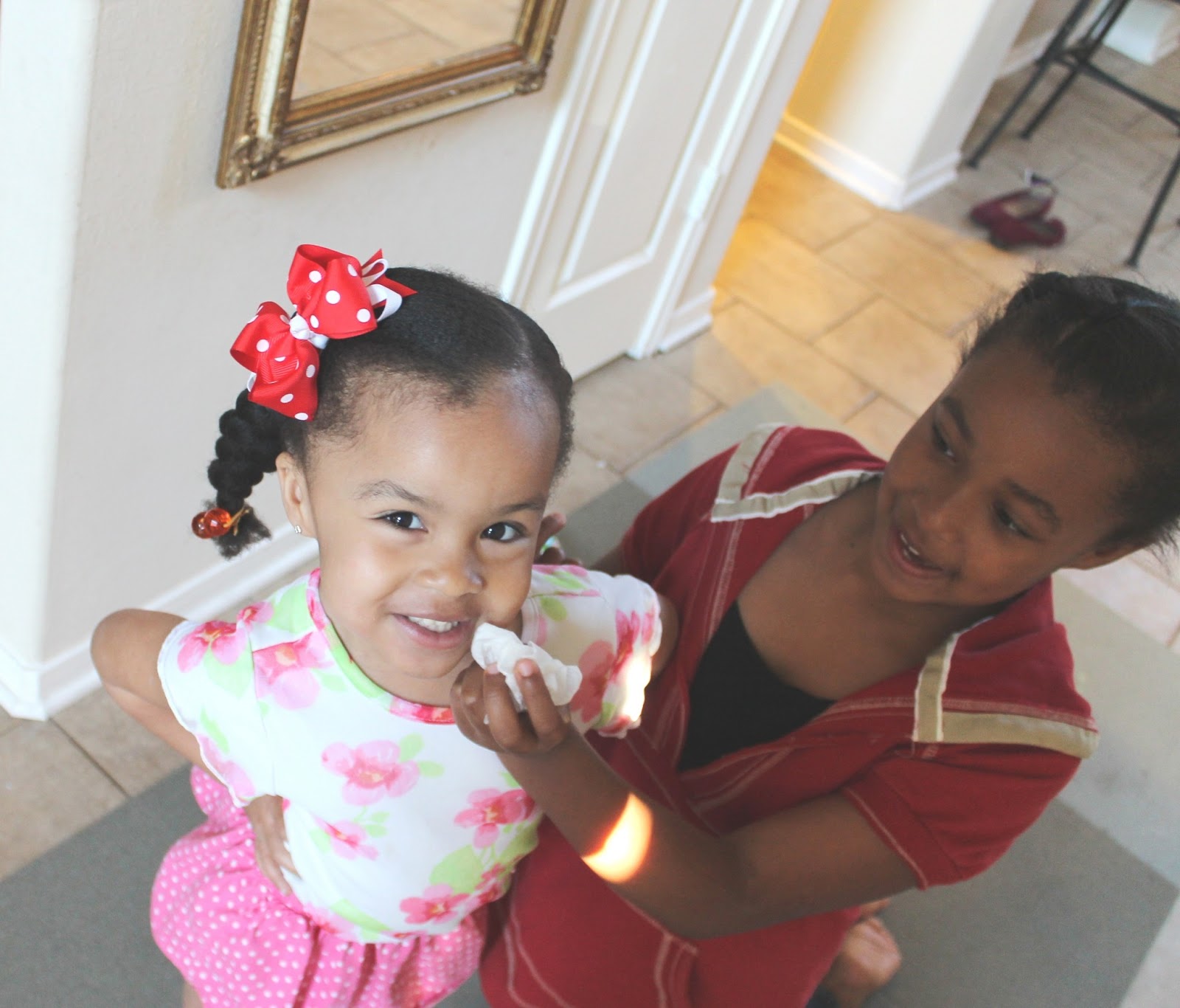 And look her big sister helped her.